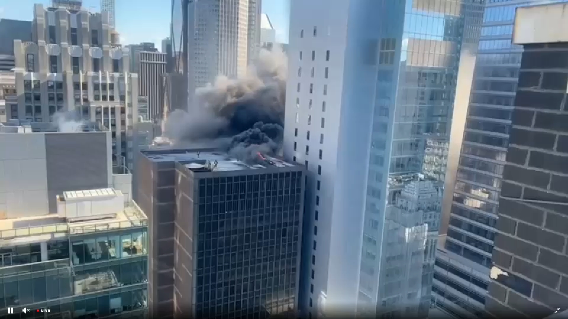MIDTOWN, Manhattan (WABC) — Thick plumes of black smoke billowed into the sky from a roof fire in Midtown Manhattan on Tuesday morning, less than a block away from the annual St. Patrick’s Day Parade.